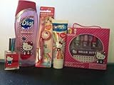Contains Crest Hello Kitty Bubble Gum Flavored Tooth Paste + Tooth Brush, Dial Hello Kitty Moisturizing Body Wash (16 fl oz) plus A Hello Kitty Manicure Set containing 1 Nail File, 27 Nail Stickers + 3 Bottles of Nail Polish PLUS Hello Kitty Cologne Spray (1 fl oz)
