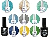Professional UV Nail Gel Big Collection Exotic Jungle Vibrant 3 glitters+6 gels+Base&Top+ Aviva Nail Buffer - UV Gel Color Polish: UV-Nailsâ"¢ Gel Color is a revolutionary formula, that when used with a UV-Nailsâ"¢ UV Lamp, dries/cures quickly and beautifully. Choose from 60 vibrant colors that won't chip or peel for up to 2-3 weeks. UV Gel Base Coat Polish: Apply to strengthen your nails. This top-quality base coat doesn't separate or life, filling in nail ridges for smooth finish. Cure under the UV light for only Two Minutes. UV Gel Top Coat Polish: UV Nails Top Coat Gel seals, protects, and adds brilliant shine to all gel and glitter colors. Once applied curing time is Two minutes and your nails are ready to go! Aviva Nail Buffer: The Famous 4 side Nail Buffer, which will transform your nails to make them much healthier and Shine and Dazzle without the use of harmful chemicals from nail polish!
