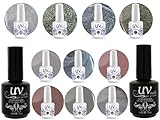 Professional UV Nail Gel Big Collection Feng Shui Vibrant 4 glitters+6 gels+Base & Top+Aviva Nail Buffer & File - UV Gel Color Polish: UV-NailsTM Gel Color is a revolutionary formula, that when used with a UV-NailsTM UV Lamp, dries/cures quickly and beautifully. Choose from 60 vibrant colors that won't chip or peel for up to 2-3 weeks. UV Gel Base Coat Polish: Apply to strengthen your nails. This top-quality base coat doesn't separate or life, filling in nail ridges for smooth finish. Cure under the UV light for only Two Minutes. UV Gel Top Coat Polish: UV Nails Top Coat Gel seals, protects, and adds brilliant shine to all gel and glitter colors. Once applied curing time is Two minutes and your nails are ready to go! Aviva Nail Buffer: The Famous 4 side Nail Buffer, which will transform your nails to make them much healthier and Shine and Dazzle without the use of harmful chemicals from nail polish! The A-viva eco nail file is made with natural, sustainable materials.