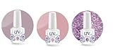 Key features of UV-Nails Soak-Off Gel Set Purple Rain (221,209,210) 2 Polishes & 1 Glitter 0.5 OZ + Aviva Nail Buffer